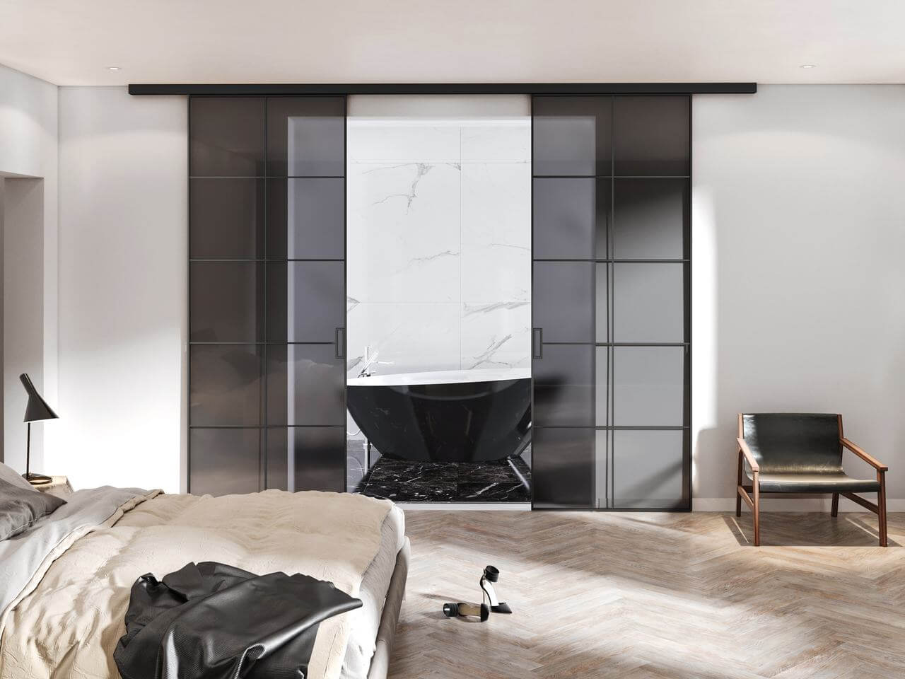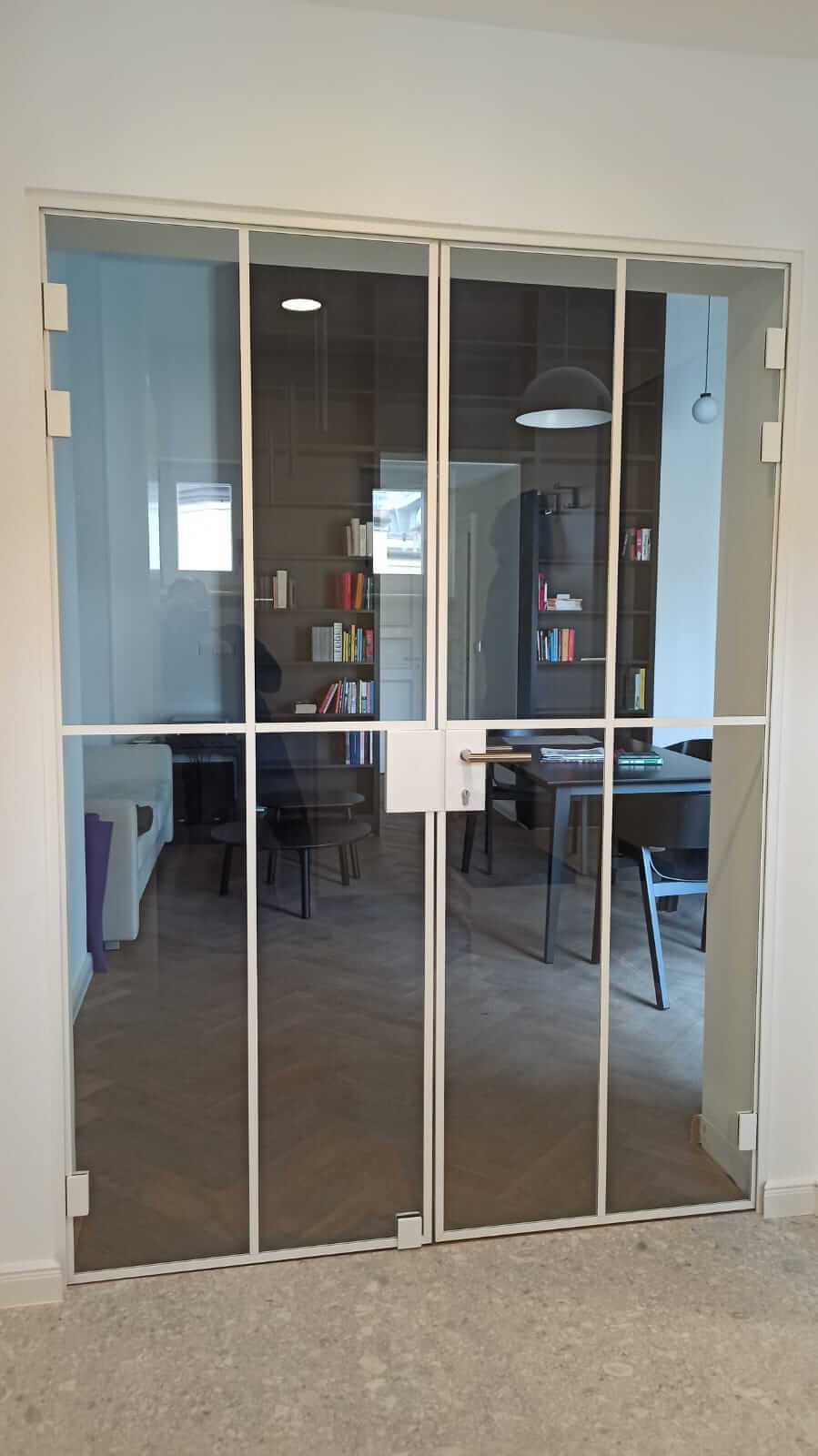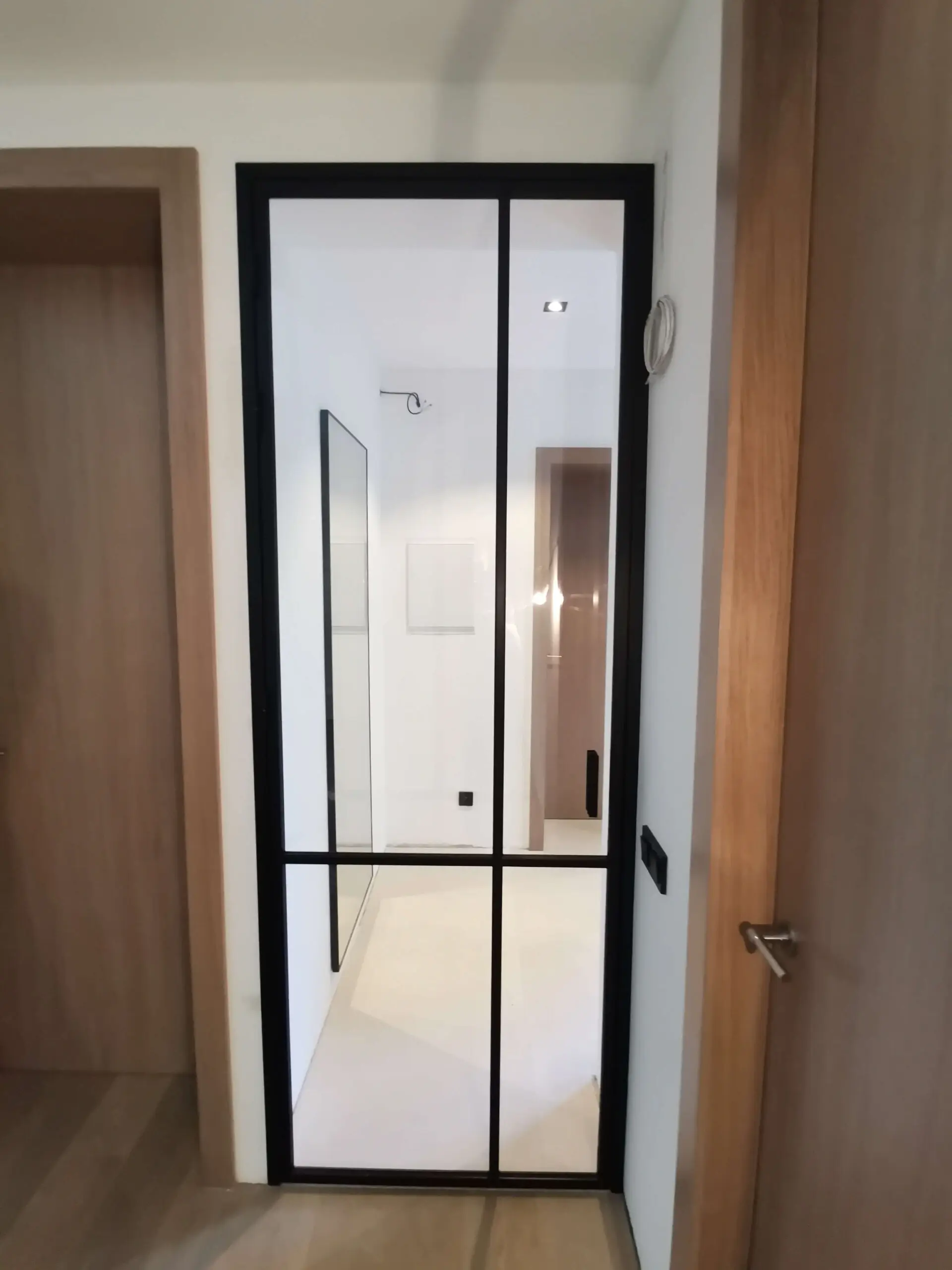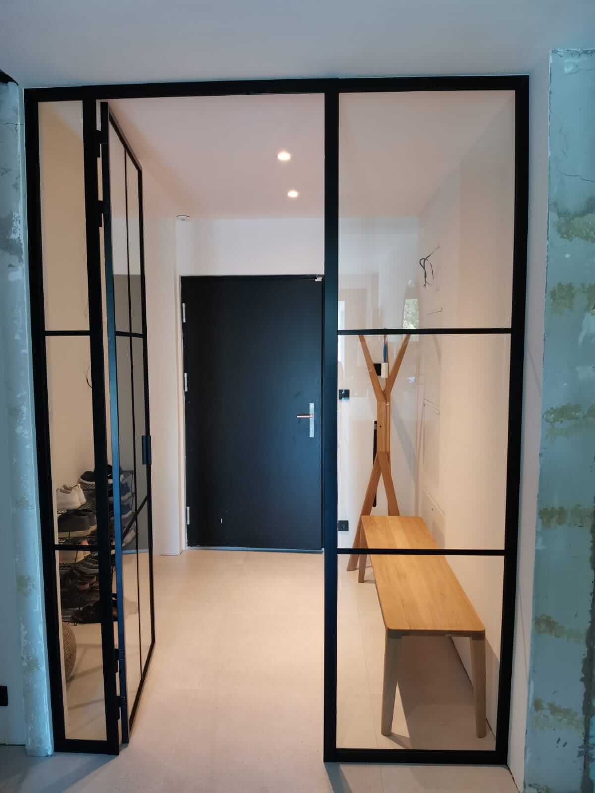 Stěny jsou dostupné s jednokřídlými, dvoukřídlými nebo posuvnými dveřmi, což umožňuje flexibilní řešení pro kanceláře, byty, showroomy i komerční prostory. Kombinace průhledného skla, industriálních prvků a moderního designu vytváří vzdušný, světlý prostor s osobitým charakterem.